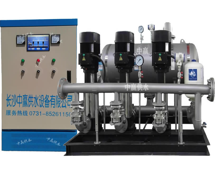長沙中贏工業生活變頻給水設備是將交流變頻調速技術、可編程控制技術應用于水泵自動控制設備之中,與電機泵組相結合的